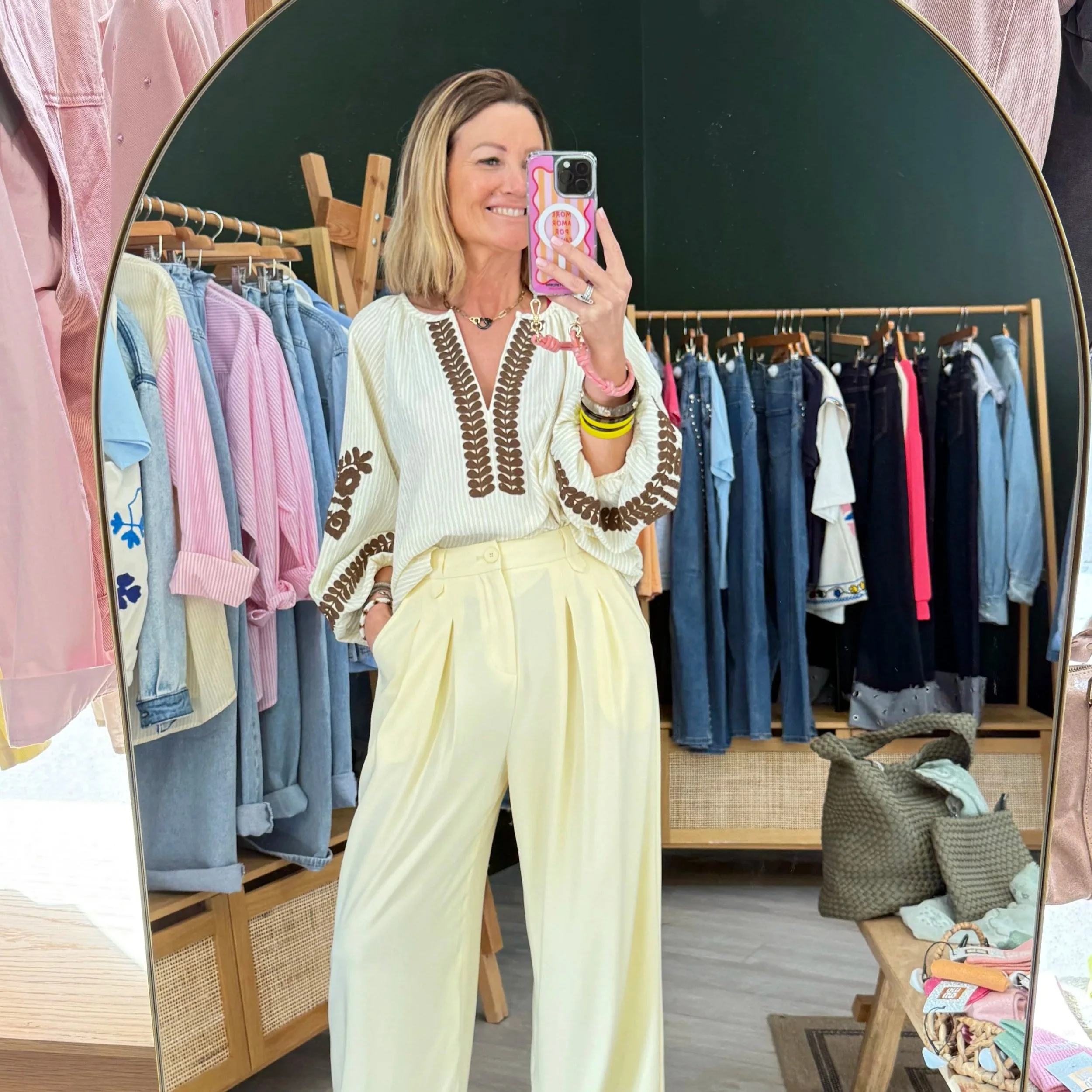 Vanessa mesure 1m65 et porte une taille S/M🧵 Composition : 100% coton🧼 Entretien : lavage à 30°, repassage doux recommandé